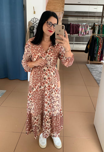 Vestido de Sarja com Motivo Floral Colorido para Bebé Menina, Bege Zippy
