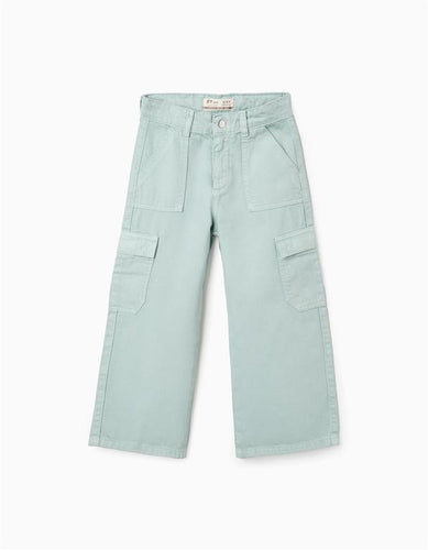 Calças de Sarja com Bolsos Cargo para Menina 'Wide Leg', Verde Água Zippy