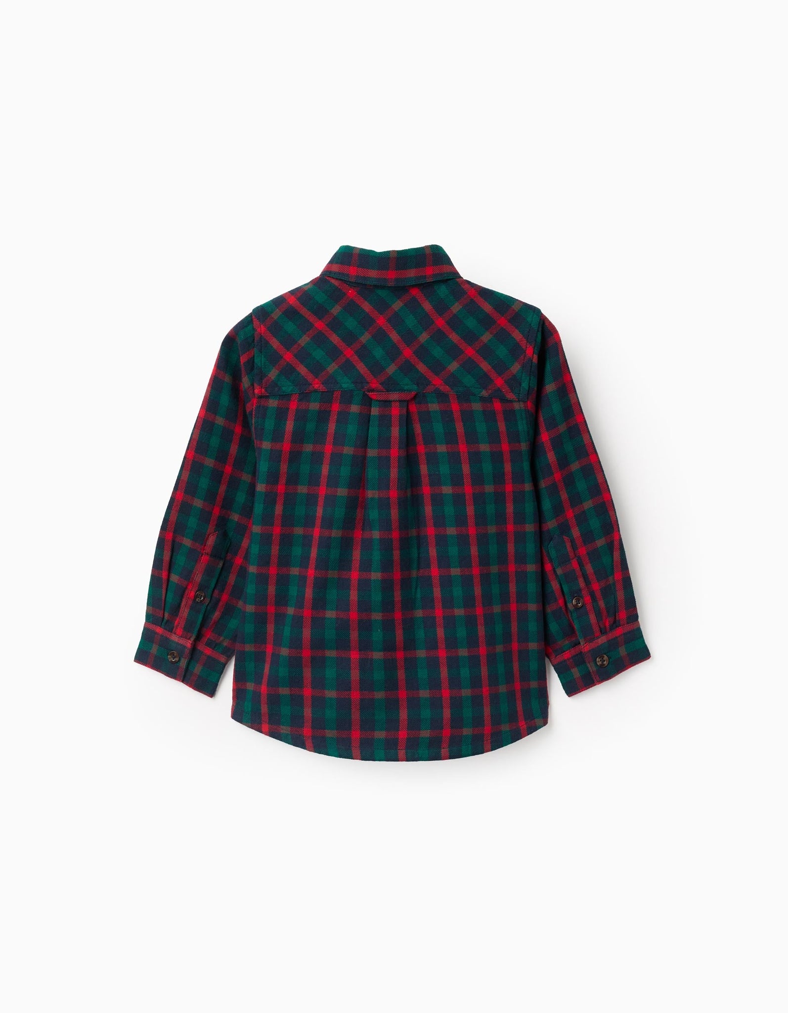 Descubra esta camisa de manga comprida, perfeita para o seu bebé. Fabricada em sarja de 100% algodão, este modelo garante um toque suave e agradável na pele, ideal para os dias mais frios. O padrão xadrez em verde, azul-escuro e vermelho confere um toque especial, tornando-a uma escolha versátil para várias ocasiões. É a peça perfeita para combinar looks entre toda a família!