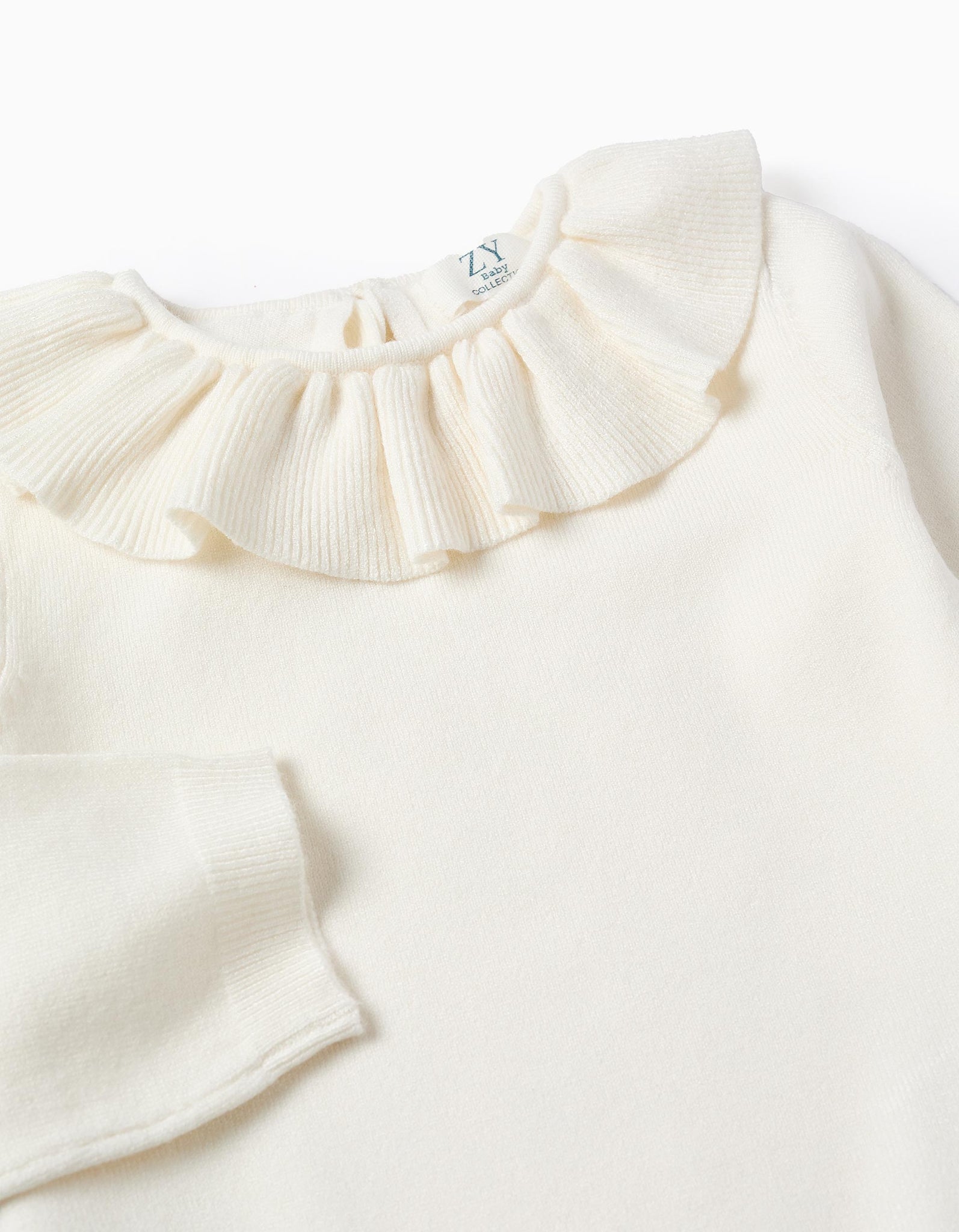 Camisola de Malha com Gola de Folhos para Bebé Menina, Branco Zippy