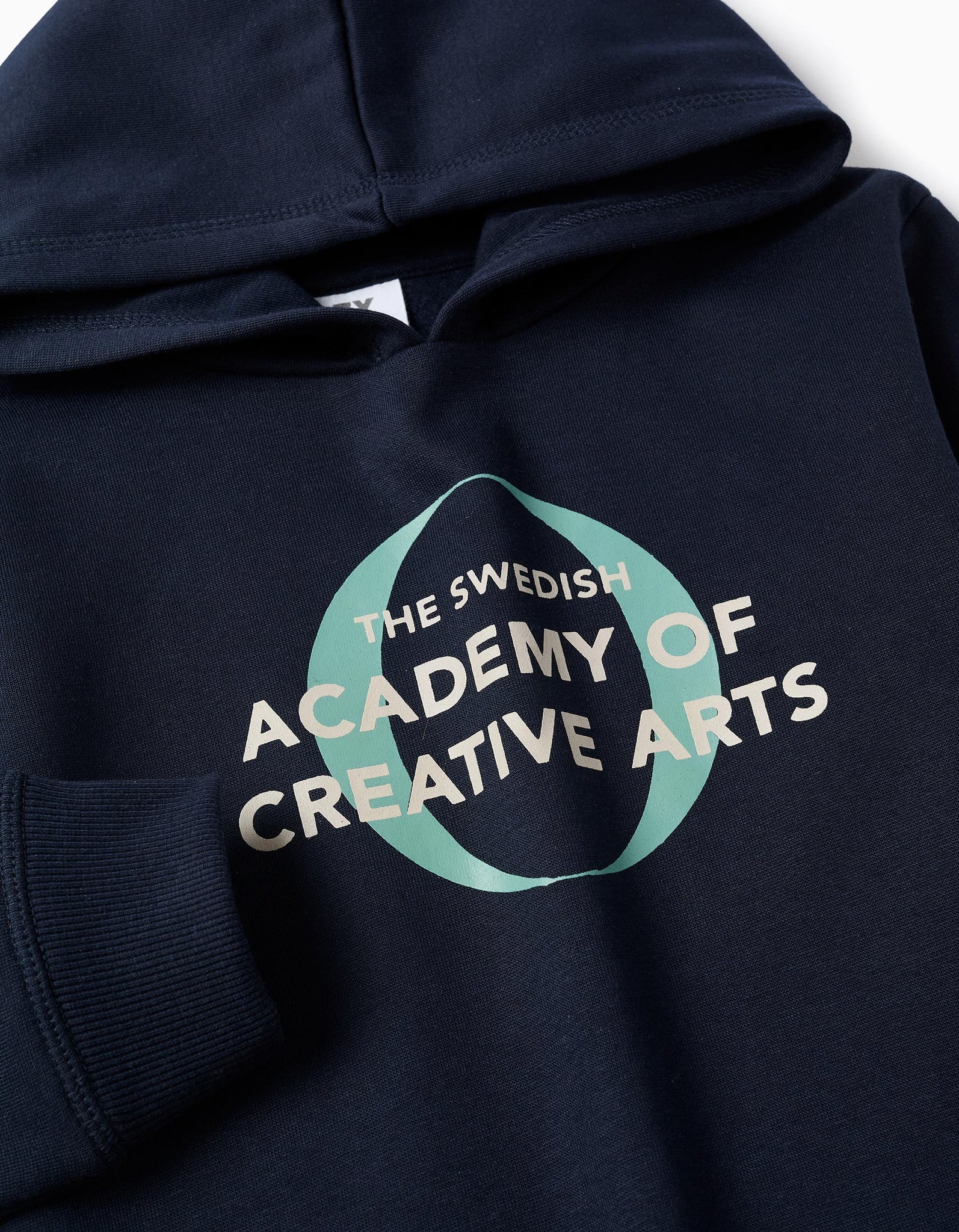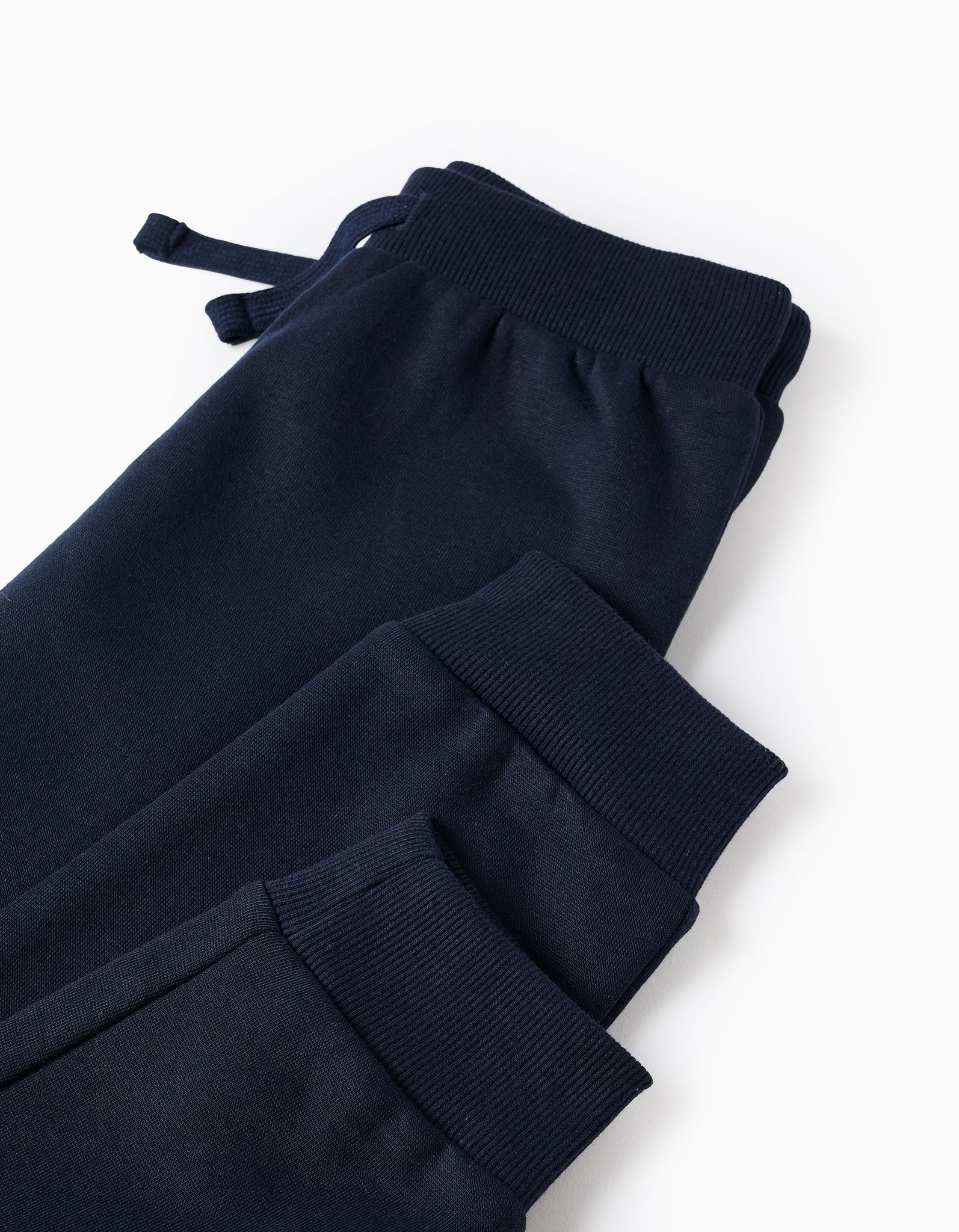 Fato de treino azul-escuro de duas peças para menino, fabricado em mistura de algodão. Interior cardado para maior conforto térmico. É composto por uma sweat com capuz e com estampado no peito; e uma calças joggers lisas. Extremidades caneladas para um ajuste perfeito. Um conjunto perfeito para o dia-a-dia! We Care: artigo com certificado Oeko-Tex Standard 100, que garante a ausência de substâncias nocivas ou irritantes para a pele.