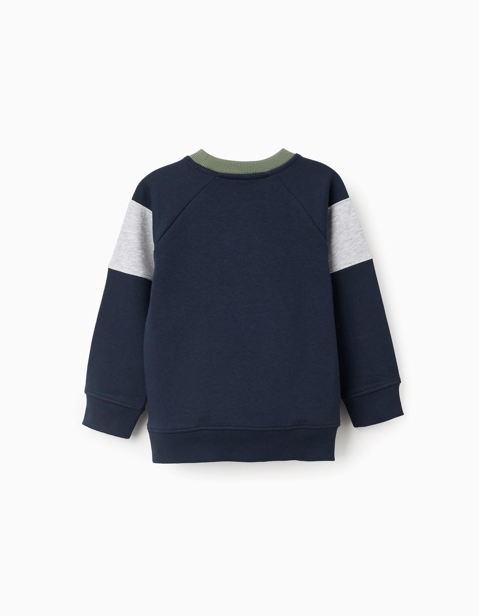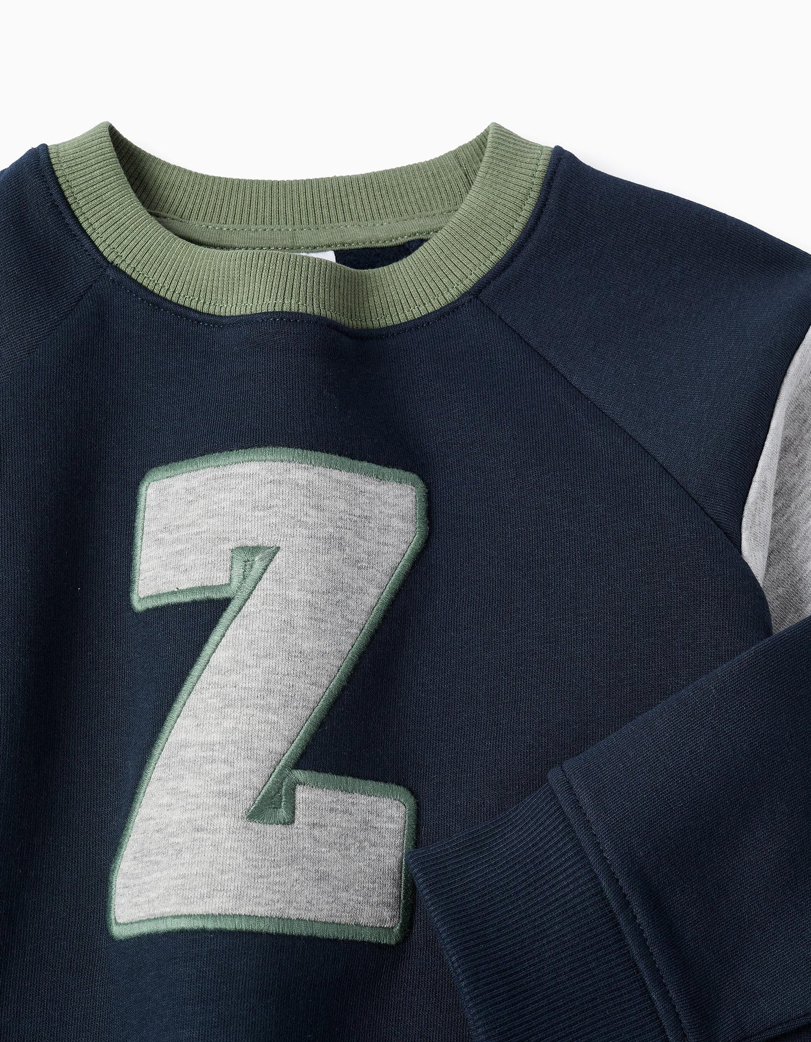 Sweat azul-escura para menino. Com interior cardado, em mistura de algodão suave e confortável. Com detalhes em cinza, nos ombros e na frente. Gola em verde. Bordado de um Z na frente. Ombros descaídos para um fit descontraído. Detalhe de branding em relevo à frente. Extremidades caneladas para um ajuste perfeito. Para looks urbanos e cheios de estilo!