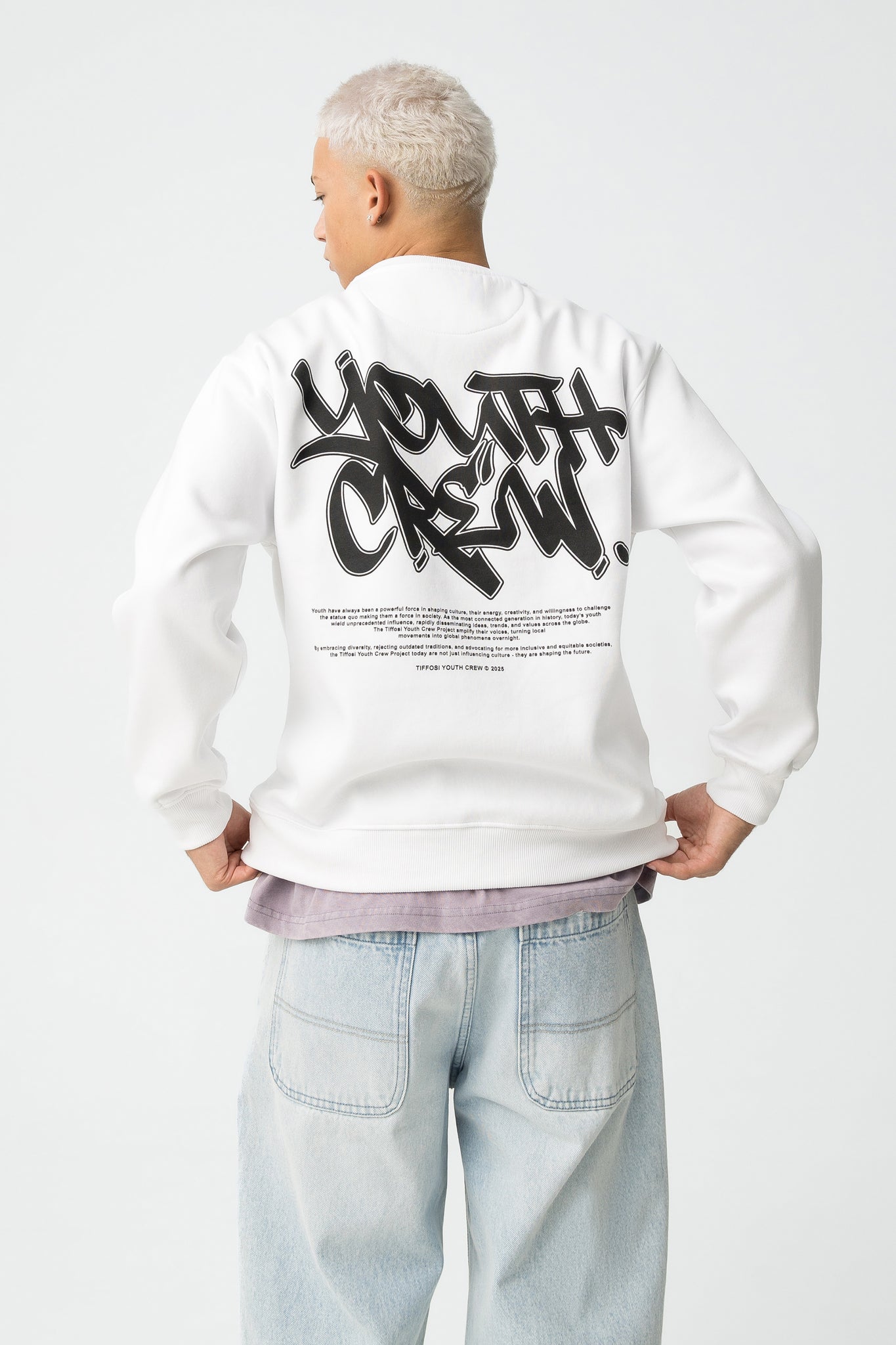 Sweat relaxed fit com estampado “TYCW” em alto-relevo e estampa gráfica nas costas. Decote redondo, manga comprida e acabamentos em rib. Interior cardado.