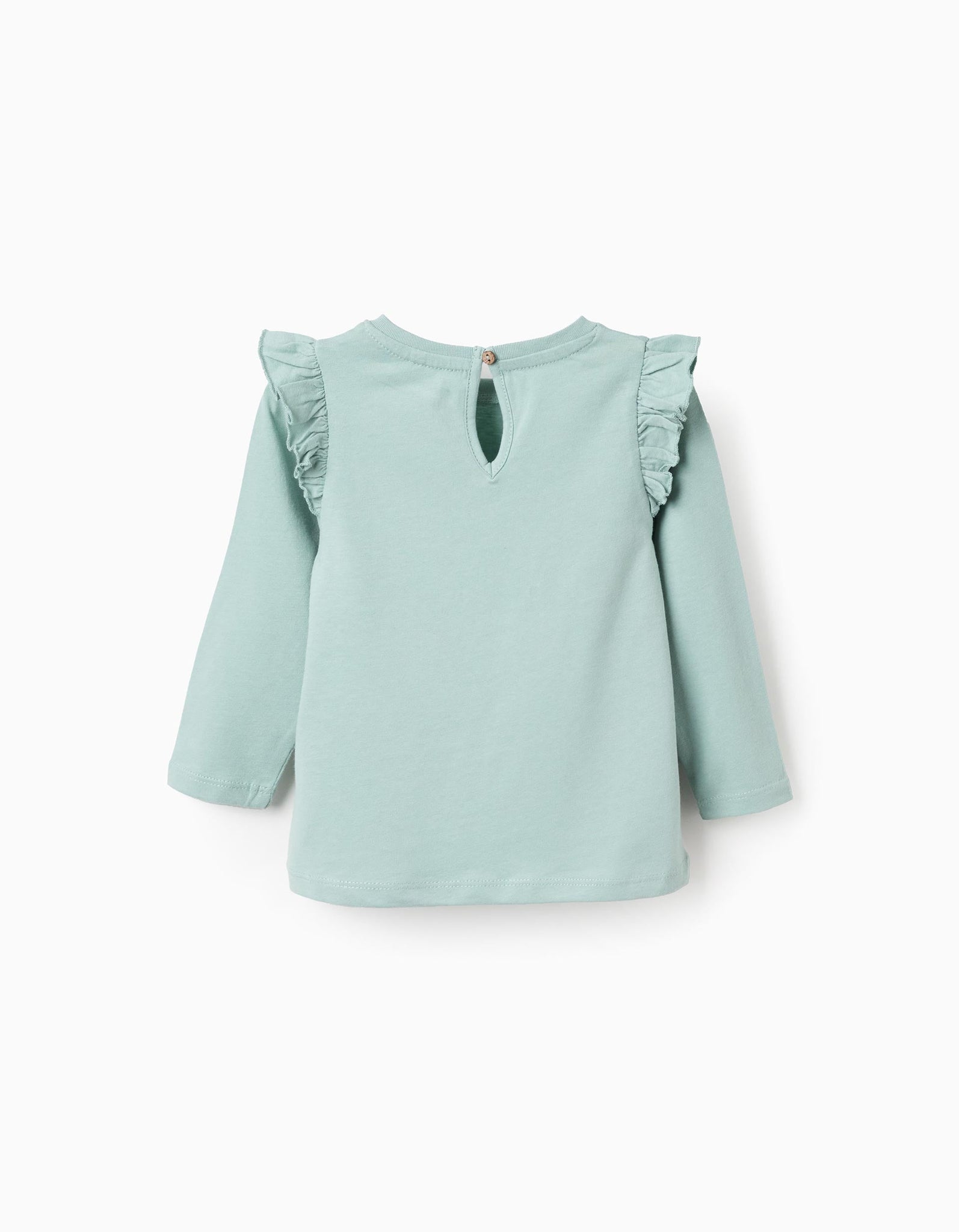 T-shirt de Manga Comprida com Folhos para Bebé Menina 'Formas', Verde Zippy