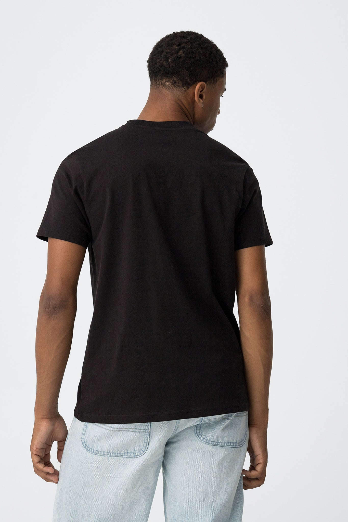 T-shirt relaxed fit de algodão com estampado graffiti e mensagens em alto relevo. Decote redondo e manga curta.